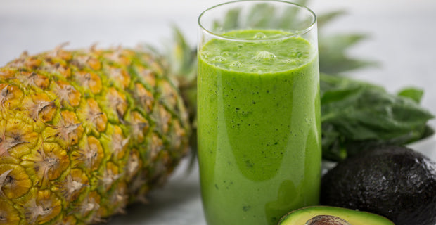 My basic green smoothie consists of spinach leaves, banana, and pineapple. Add a little water and ice, and you'll have a great green smoothie.
