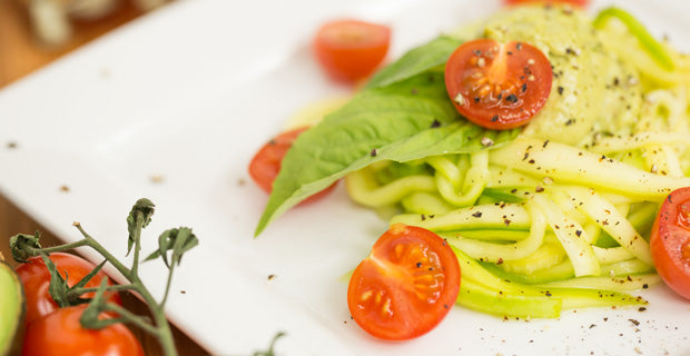 Are you a raw food eater? Try this delicious creamy pesto sauce over a bed of zucchini noodles. To make zucchini noodles, slice zucchini into julienne strips. To soften, salt the noodles and rinse after 15 minutes. Toss noodles with this velvety pesto sauce and reserve a little avocado for garnish. Get the full recipe on the Blendtec Recipes page.