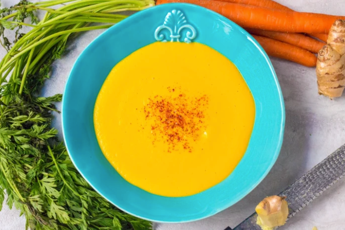 This sweet potato bisque is a creamy and flavorful soup made with a rich-hued root-vegetable. The sweetness of the sweet potatoes is mellowed out by the milk and broth, making this a wonderfully balanced and warming soup. It can be served as an appetizer or a main course. Serve it with a side of crusty bread and a sprinkle of fresh herbs for a cozy and comforting meal.