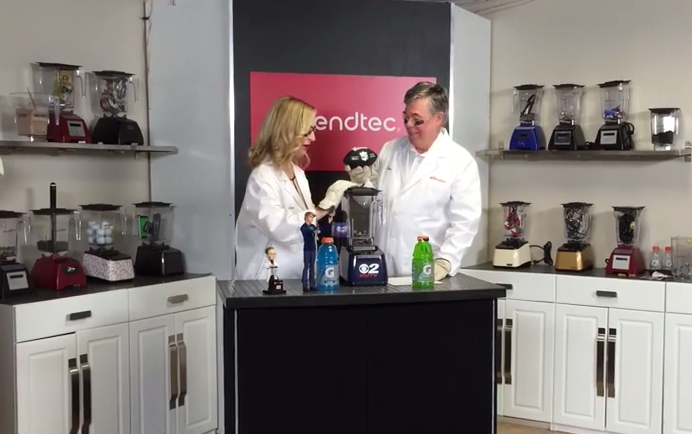 Tom prepares to blend the deflated football. Check out the behind the scenes footage of Tom Dickson blending some items for the "Big Popular Football Game Played the Night Before Groundhog Day" as well as how to properly "deflate" a football in this "unofficial" Will it Blend? episode taped by local CBS affiliate (KUTV2) and reporter Brooke Graham.