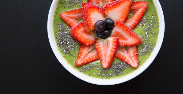 A creamy green smoothie that is perfect when eaten with a spoon and your favorite toppings!